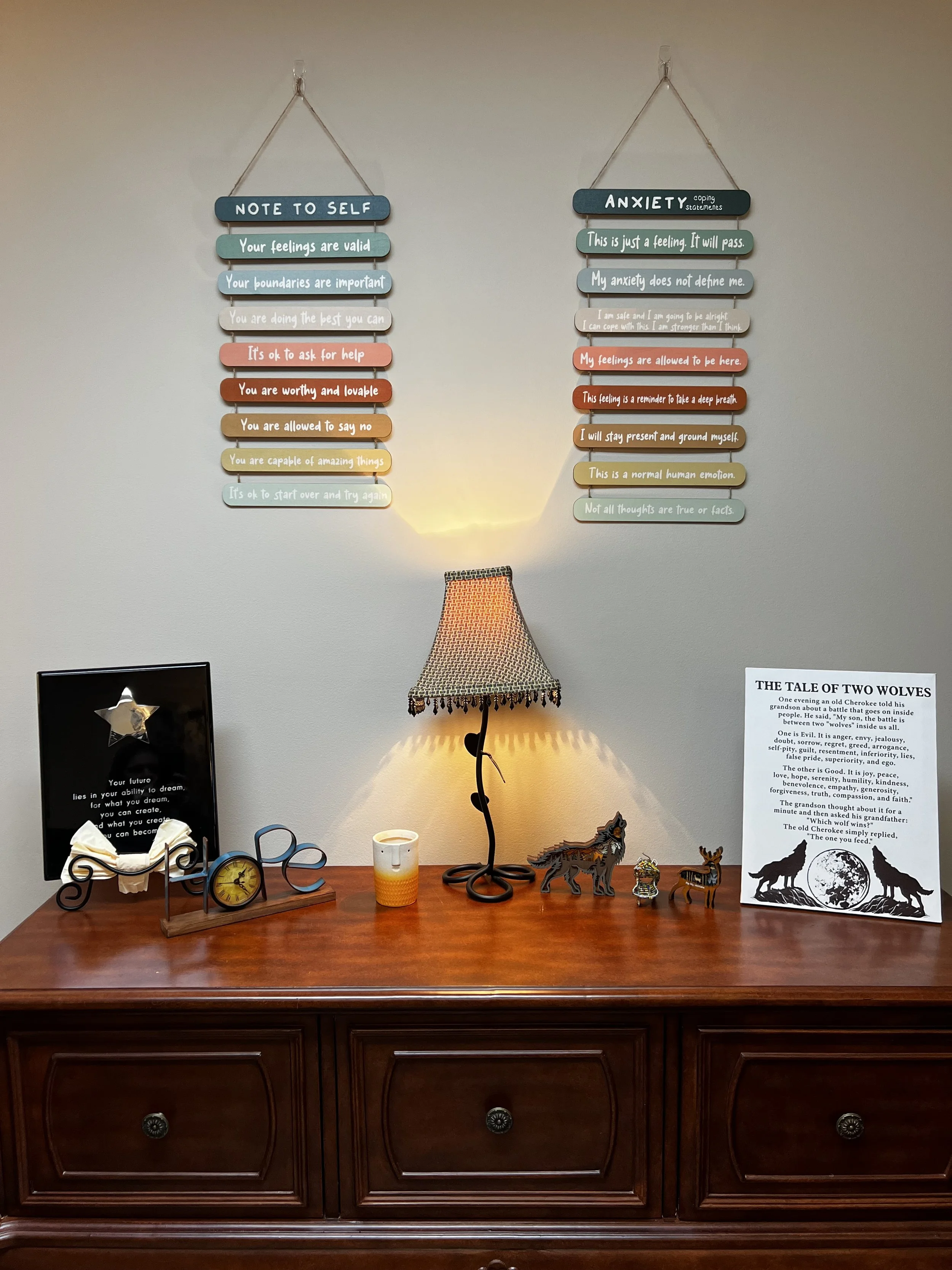 Clients will feel supported and heard, even when struggling to put their experiences or emotions into words, through creative and individualized therapeutic techniques. Therapy with me helps individuals build personal confidence, achieve meaningful goals, make positive decisions, and establish a strong foundation for future success.